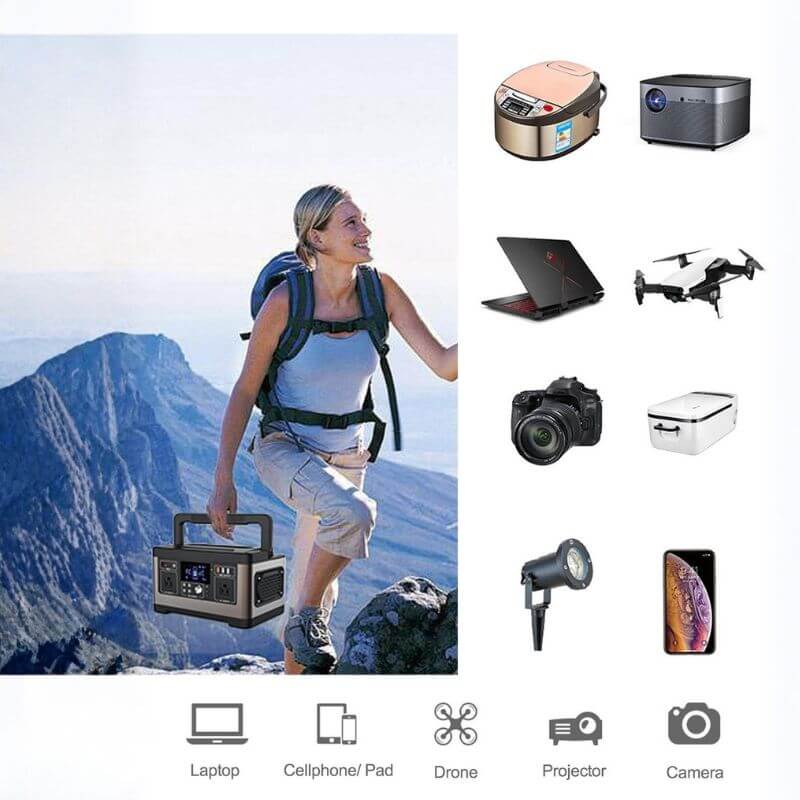 520Wh 500W Pure Sine Wave Lithium Battery Generator for Camping, Emergency, Home Backup